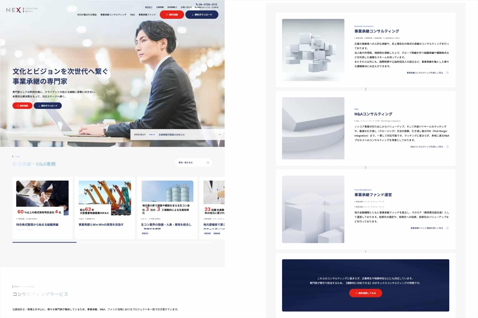 事業承継やM&Aのコンサルティングを行う企業様の、サイトリニューアルをお任せいただきました。
