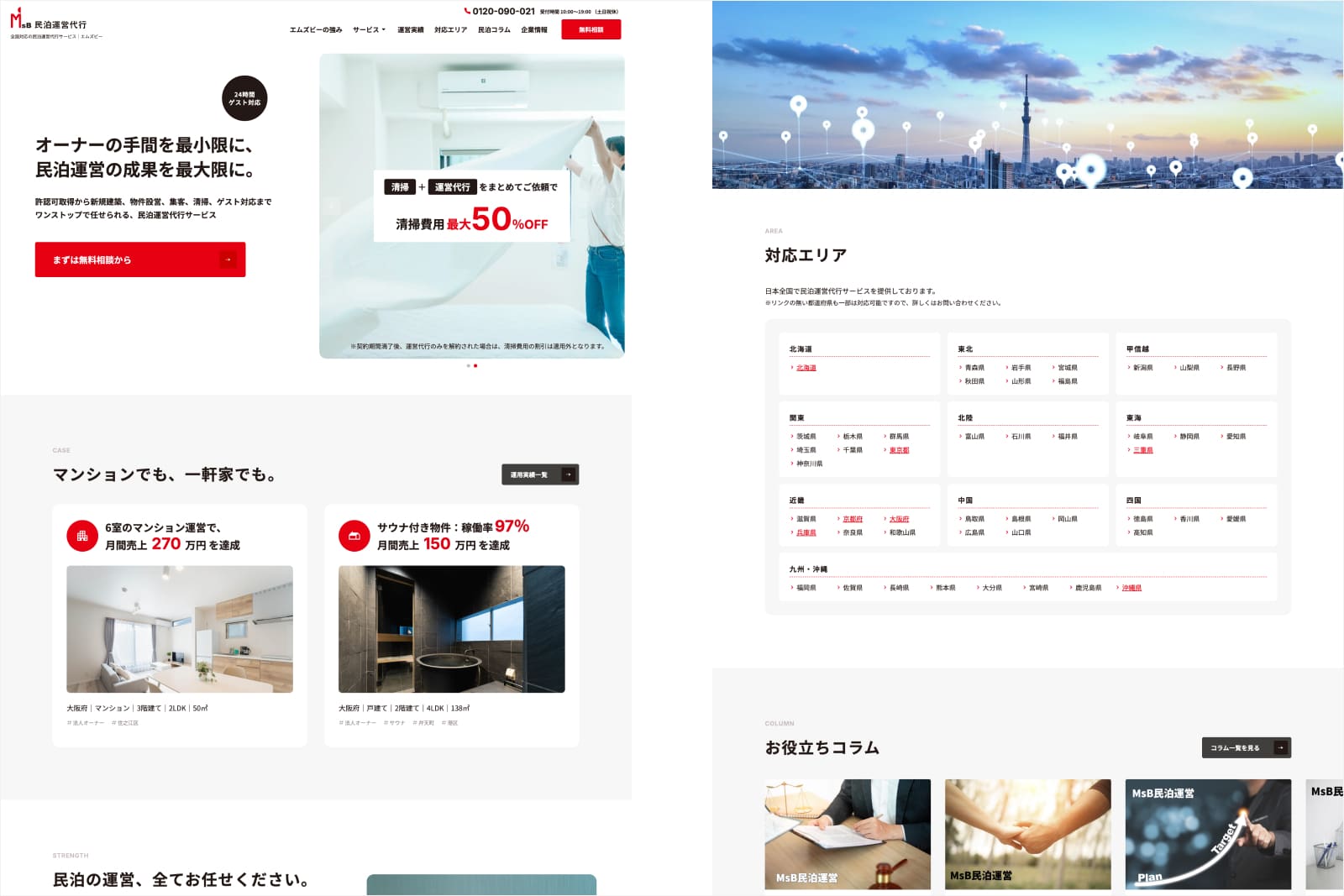 株式会社エムズビー様の、民泊運営代行サービスサイトのリニューアル。